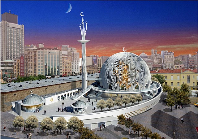 El proyecto de la nueva mezquita de Taksim, busca resolver las necesidades de un espacio para la oración de todos aquellos fieles musulmanes que viven en el barrio o que puntualmente visitan la famosa calle comercial de İstiklal. Para su construcción se transformará un antiguo solar situado en las inmediaciones de la plaza de Taksim y que anteriormente estaba ocupado por un aparcamiento privado y por las cocheras de los tranvías.