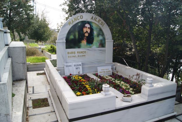 La tumba de Barış Manço, aunque comparte cementerio con otras leyendas de la música turca como Kayahan, es relativamente fácil encontrarla, especialmente por la llamativa foto de colores que decora su mausoleo.